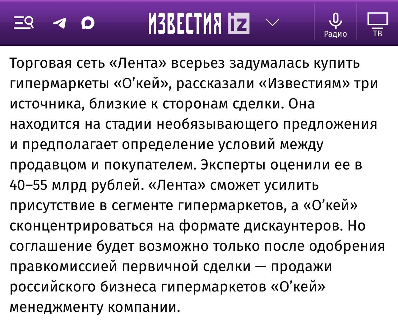 😂Лента находится «на стадии не обязывающих публикаций в СМИ».