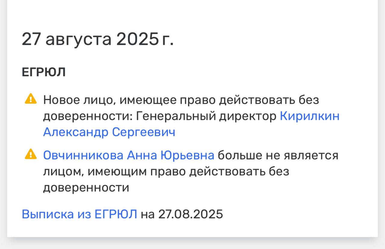 Анну Овчинникову, по совместительству являвшуюся, директором по правовым вопросам группы, сменил Александр Кирилкин, в прошлом бывший учредителем Федерации Триатлона Республики Карелия.