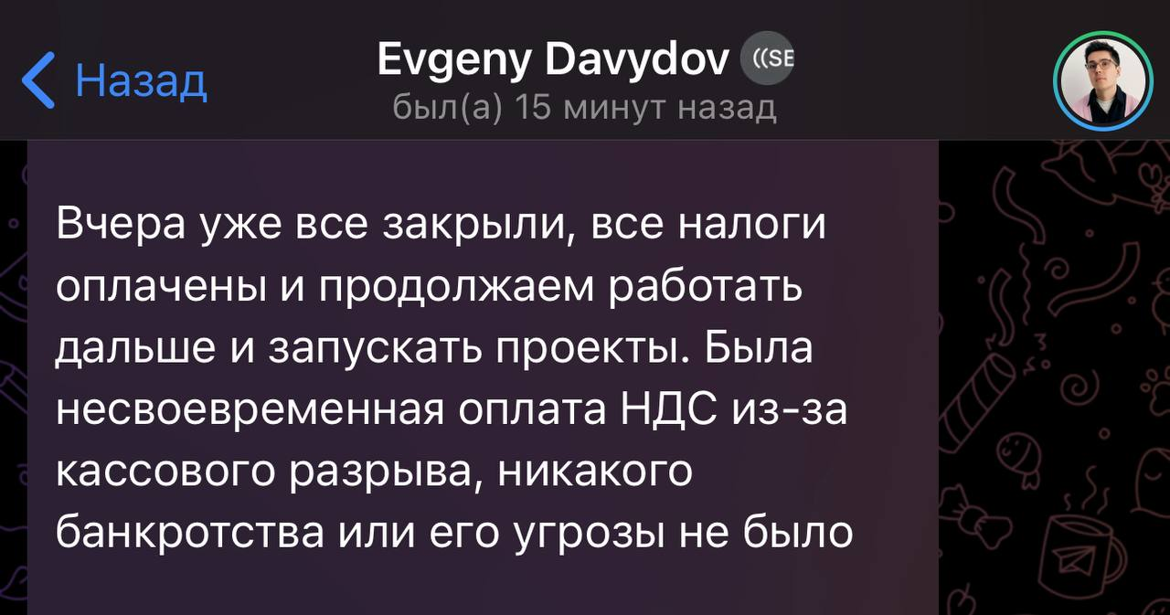 Как сообщает Евгений Давыдов Постмаркетингу: все задолженности оперативно закрыты, налоги оплачены. Соответственно, причин для продолжения дела нет. Сразу бы так!