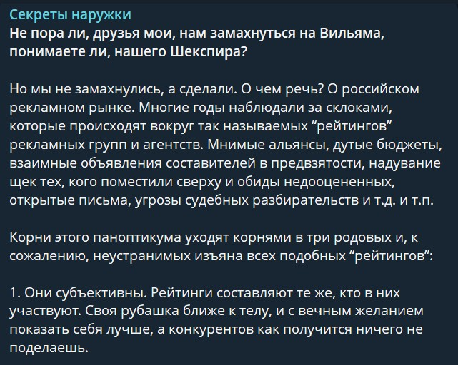🤓Кажется, Секреты наружки делают бомбу. Они говорят, что сформировали рейтинг групп и агентств по данным налоговой отчетности. То, как ранее делали это по рынку наружной рекламы или так, как это делает DMC в диджитал-перформансе.