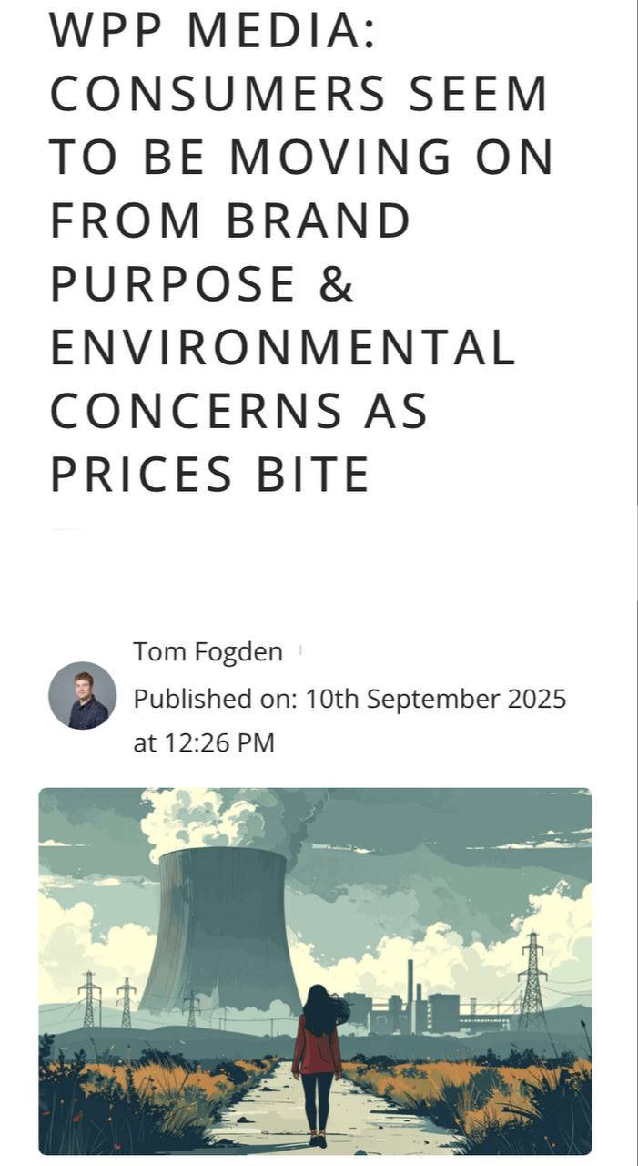 🤓А у вас повесточка сломалась. Чего и требовалось… Согласно отчету WPP Media «Реклама в 2030 году», потребители окончательно отходят от идеалов брендов и устойчивого развития.