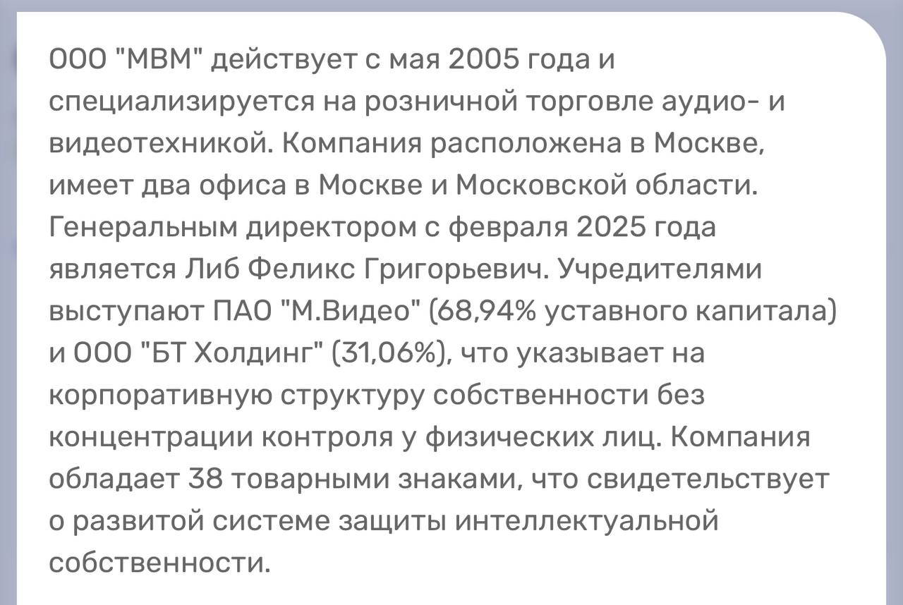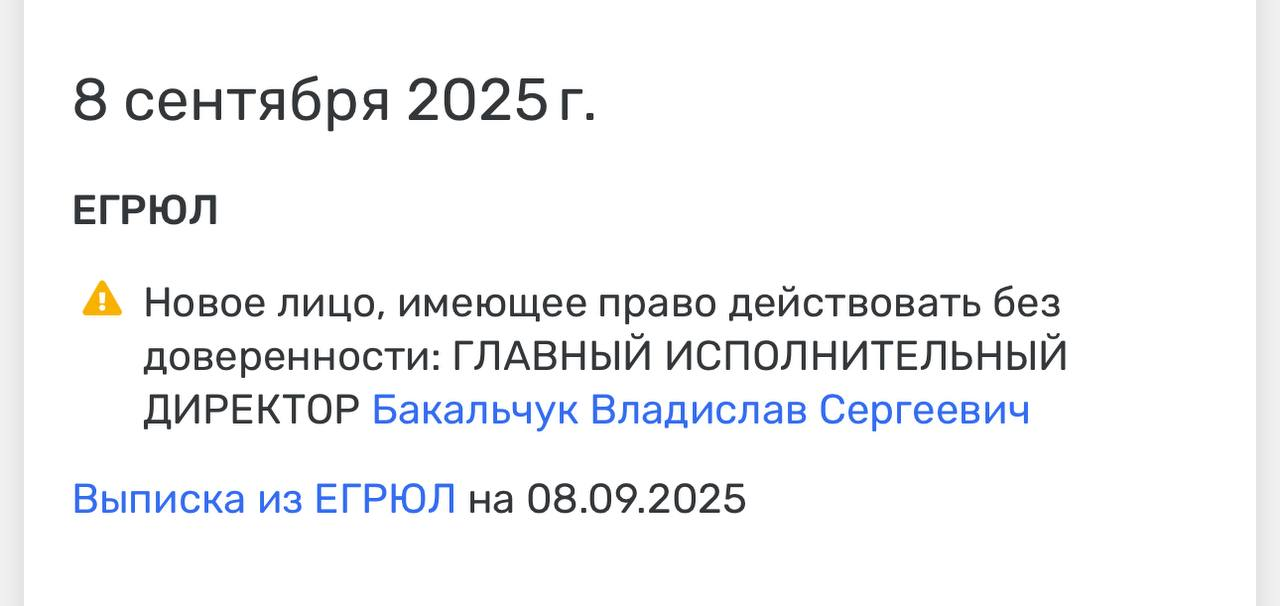 🤔А вот это любопытно. Бакальчука назначили ответственным лицом в ООО «МВМ». Это операционная компания бизнеса М.видео с оборотом 450 миллиардов рублей.
