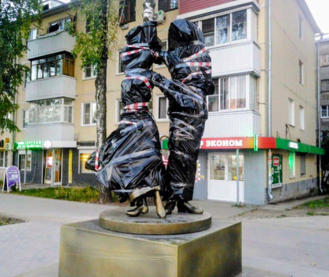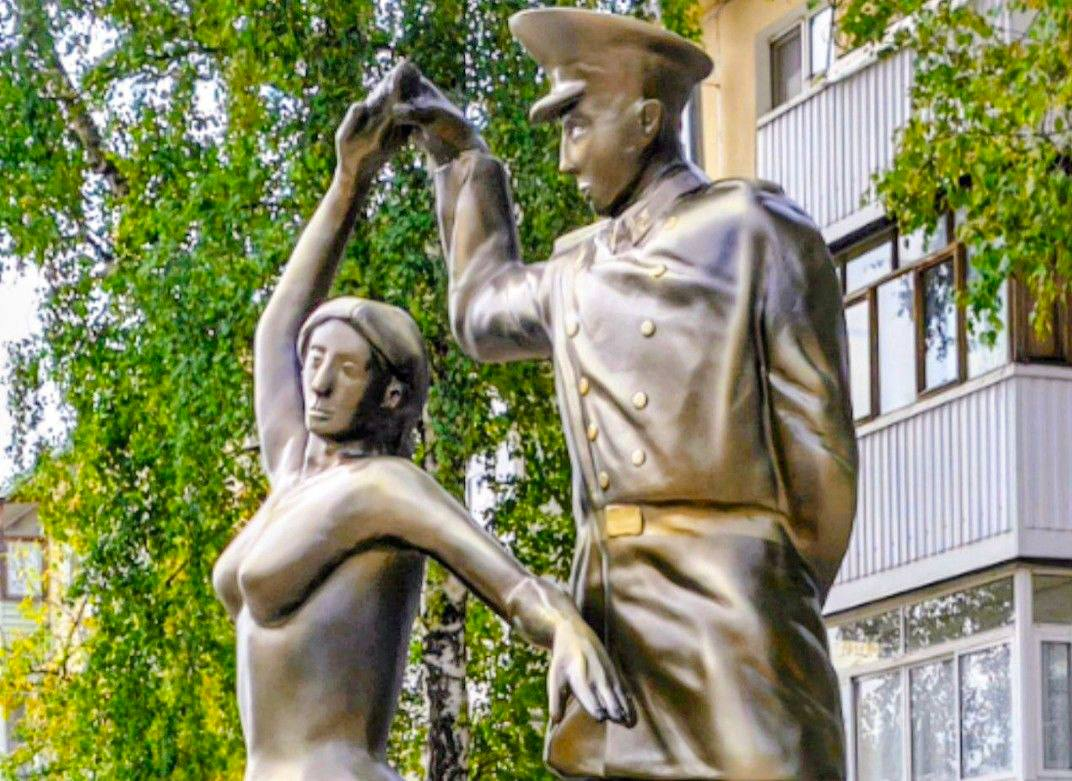 Свежий скандал с памятниками в Рязани. Там установили скульптурную композицию, олицетворяющую романтический союз курсанта-нахимовца и его девушки. Что могло пойти не так? Он был настолько бездарно выполнен, что почти сразу же его пришлось скрыть от глаз разгневанных горожан.