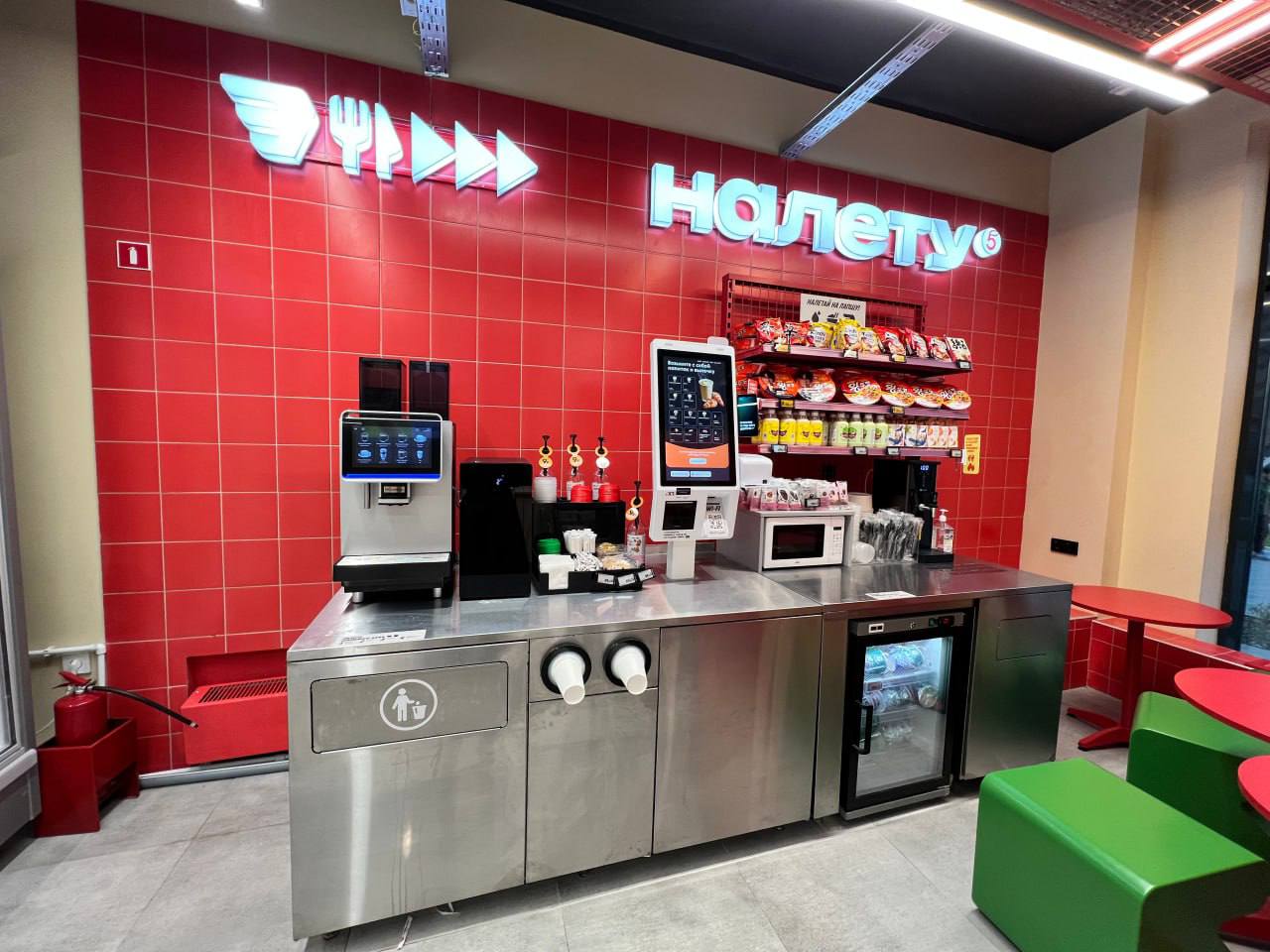 При этом, у всех строго строго одинаковые предложения: кофе-напивайка, какая-то готовая еда, два стула (типа, кафе) и короткая алко-полка. Такой неосознанный «Севен элевен».