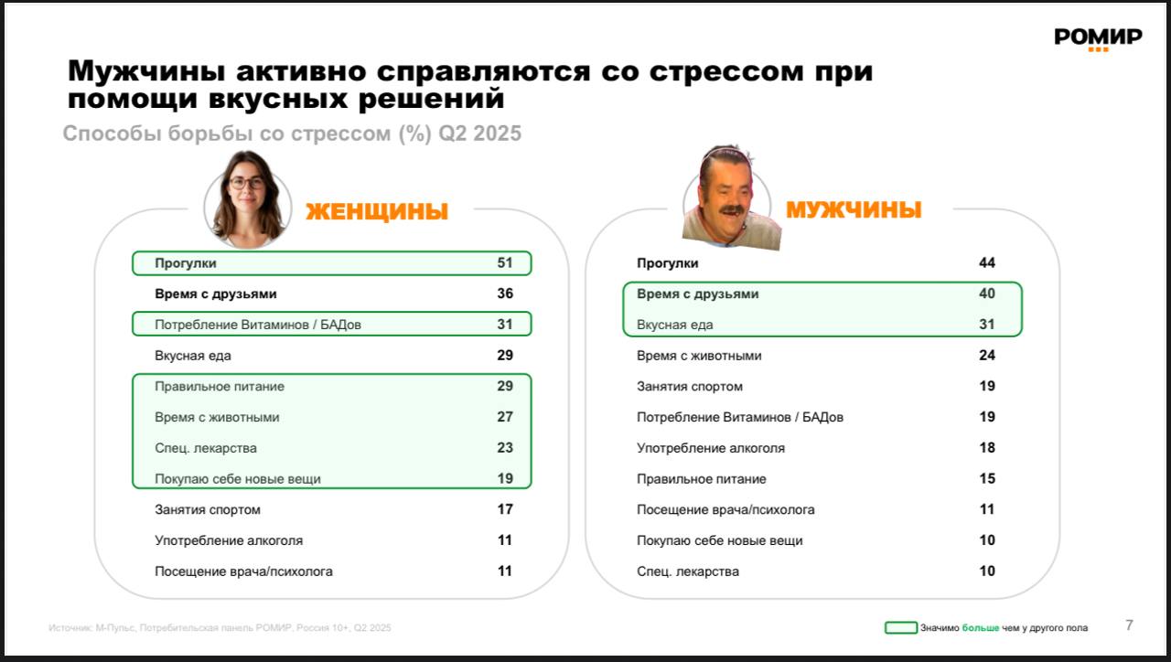 😂По данным РОМИРа алкоголизм и пьянство — менее популярный способ борьбы со стрессом, чем потребление...