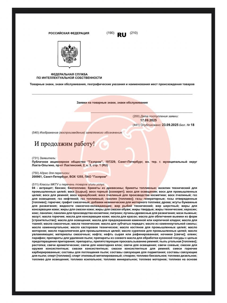 😂Очень загадочная амбиция-слоган подана на регистрацию Газпромом.