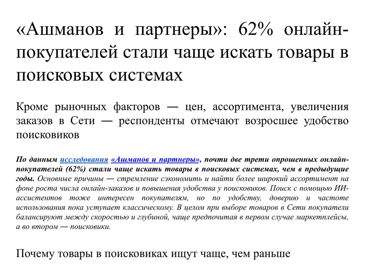 — В России люди ищут сразу на маркетплейсах, а не в поисковиках?