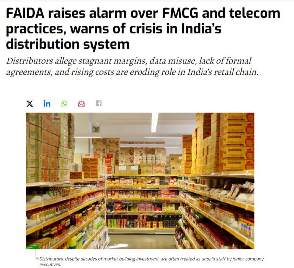 Π€Π΅Π΄Π΅ΡΠ°ΡΠΈΡ Π΄ΠΈΡΡΡΠΈΠ±ΡΡΡΠΎΡΡΠΊΠΈΡ Π°ΡΡΠΎΡΠΈΠ°ΡΠΈΠΉ ΠΠ½Π΄ΠΈΠΈ (FAIDA), ΠΎΠ±ΡΠ΅Π΄ΠΈΠ½ΡΡΡΠ°Ρ Π±ΠΎΠ»Π΅Π΅ 500 ΡΡΡ. Π΄ΠΈΡΡΡΠΈΠ±ΡΡΡΠΎΡΠΎΠ² ΠΈ 3 ΠΌΠ»Π½ ΡΠΎΠ·Π½ΠΈΡΠ½ΡΡ ΠΏΡΠΎΠ΄Π°Π²ΡΠΎΠ², ΠΎΡΠΊΡΡΡΠΎ ΠΏΡΠ΅Π΄ΡΠΏΡΠ΅ΠΆΠ΄Π°Π΅Ρ ΠΎ Π½Π°Π΄Π²ΠΈΠ³Π°ΡΡΠ΅ΠΌΡΡ ΠΊΡΠΈΠ·ΠΈΡΠ΅ Π½Π° Π½Π°ΡΠΈΠΎΠ½Π°Π»ΡΠ½ΠΎΠΌ ΡΡΠ½ΠΊΠ΅ Π΄ΠΈΡΡΡΠΈΠ±ΡΡΠΈΠΈ.