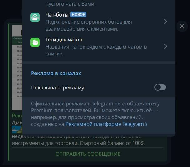 Вчера наши подписчики сообщили, что реклама в канале Постмаркетинг демонстрируется у премиум-пользователей. С выключенным бегунком «разрешать показ рекламы».