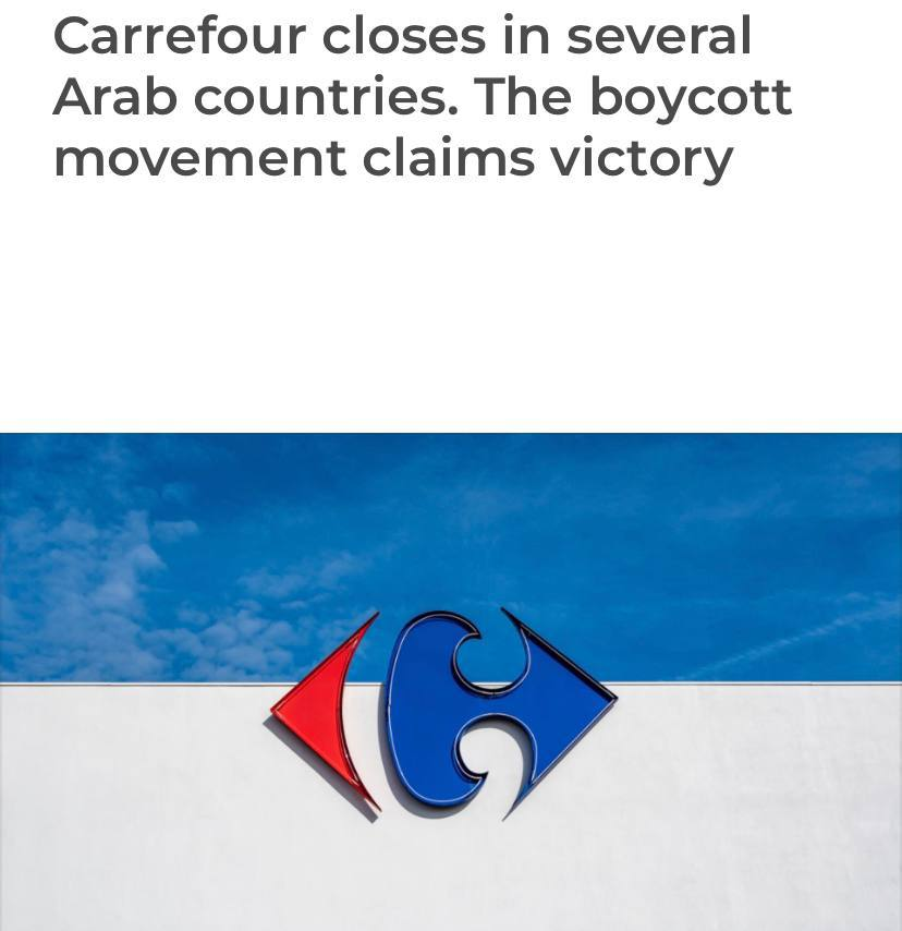 🤓О давлении общественного мнения. Крупный ритейлер Carrefour закрыл все свои магазины в Иордании, Омане, Кувейте и Бахрейне — на их месте появились новые под брендом HyperMax, якобы из-за спроса на местные товары.
