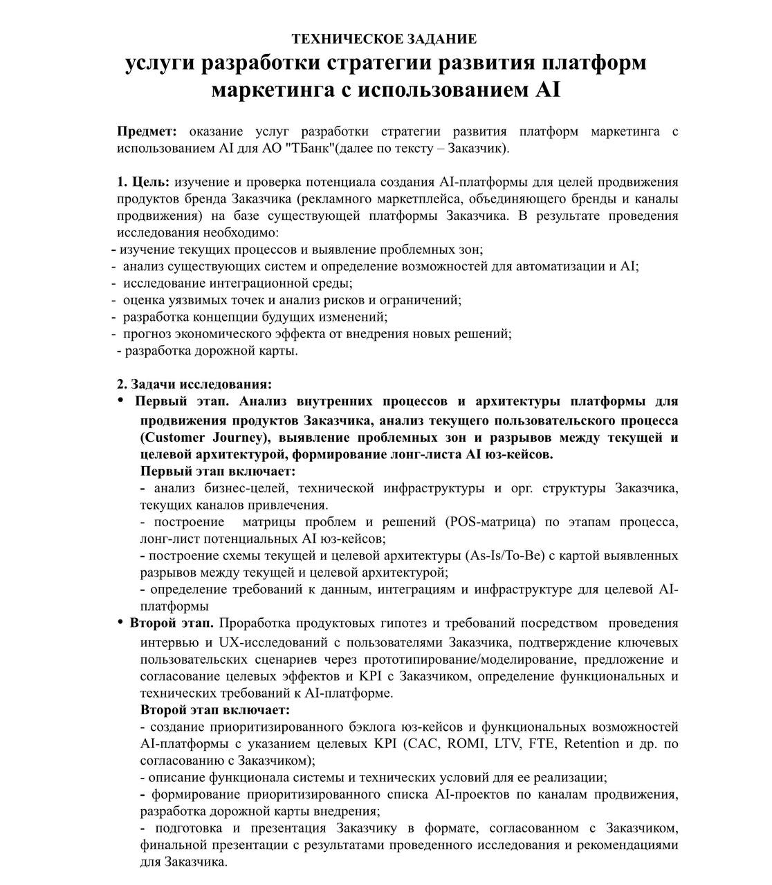 🤓Т-банк тендерит разработку невиданной маркетинговой AI-платформы.