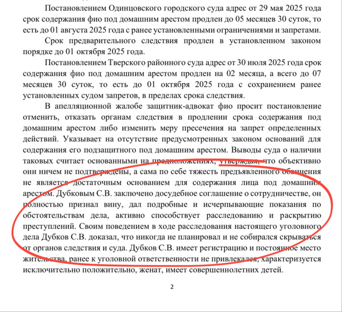 Как следует из материалов дела в ходе следствия Сергей Витальевич Дубков признал свою вину, а также заключил досудебное соглашение о сотрудничестве.