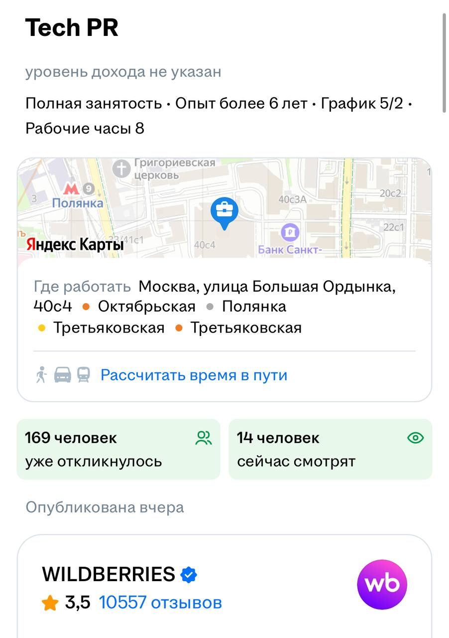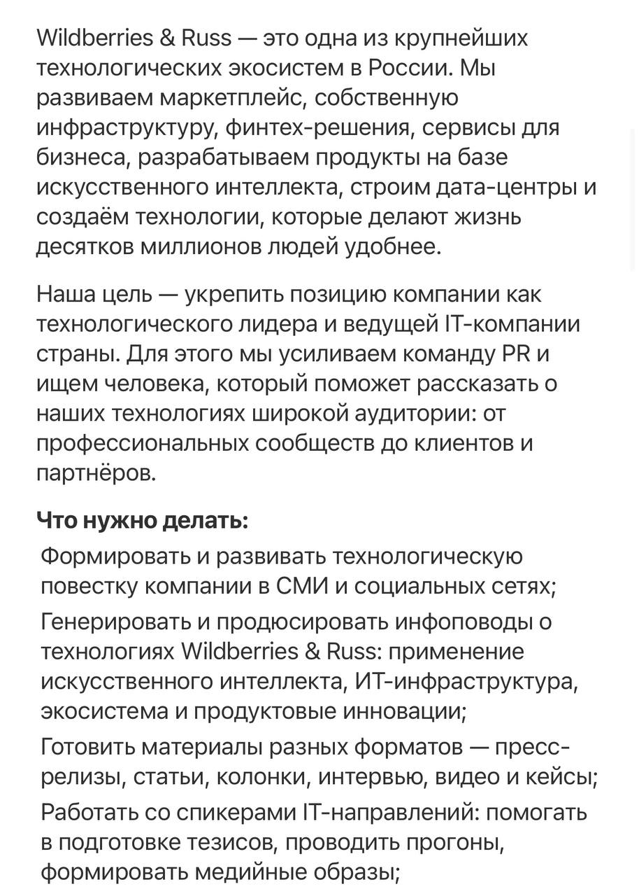 🤓У WB серьезная амбиция пиарить себя, как технологическую компанию. По этому поводу нанимают отдельного технопиарщика.