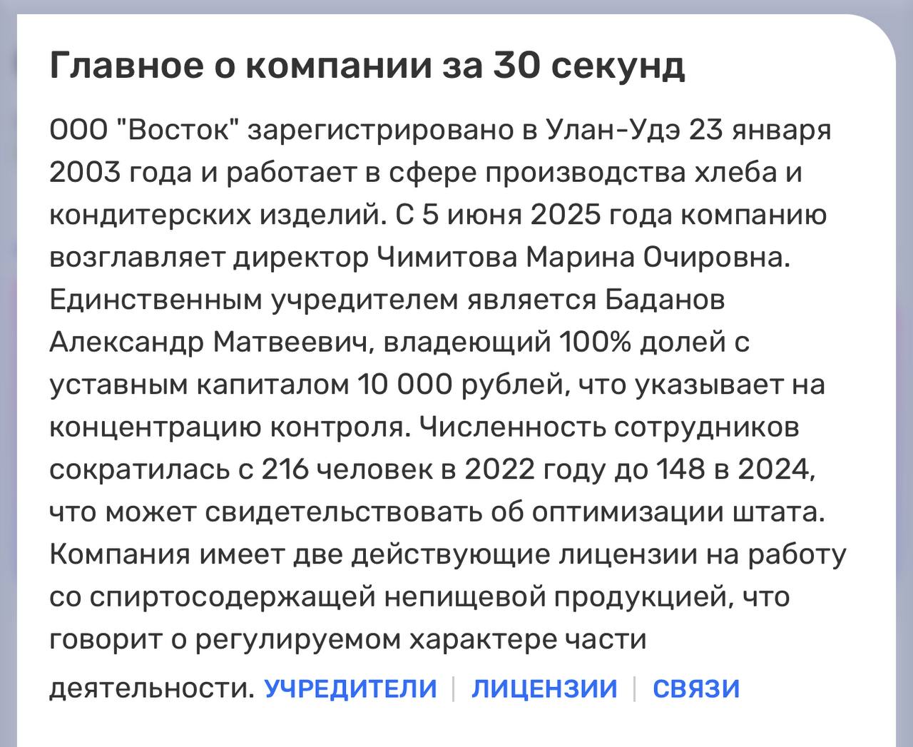 🤓Судя по всему, ООО «Восток», которое произвело готовую еду, ставшую причиной массового отравления жителей Бурятии — это собственное производство торговой сети «Николаевский». Во всяком случае, таковы связи в открытых источниках.