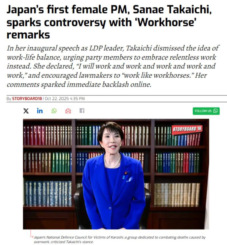 Санаэ Такаити, ставшая первой женщиной-премьер-министром Японии, вызвала бурные споры после своей инаугурационной речи как лидера Либерально-демократической партии (ЛДП).