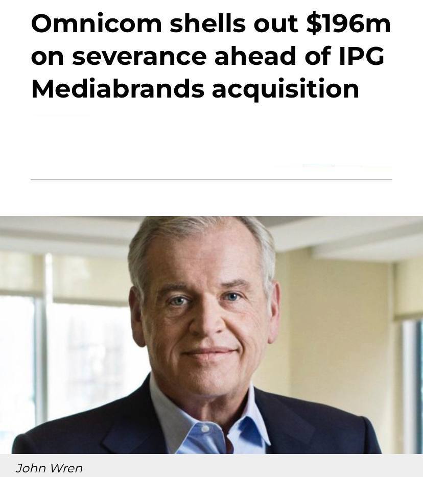 🤓Omnicom Group потратил почти 127 млн долларов на выплаты при увольнении сотрудников и «реорганизацию» в преддверии завершения крупнейшего слияния с IPG Mediabrands, которое ожидается до конца ноября.