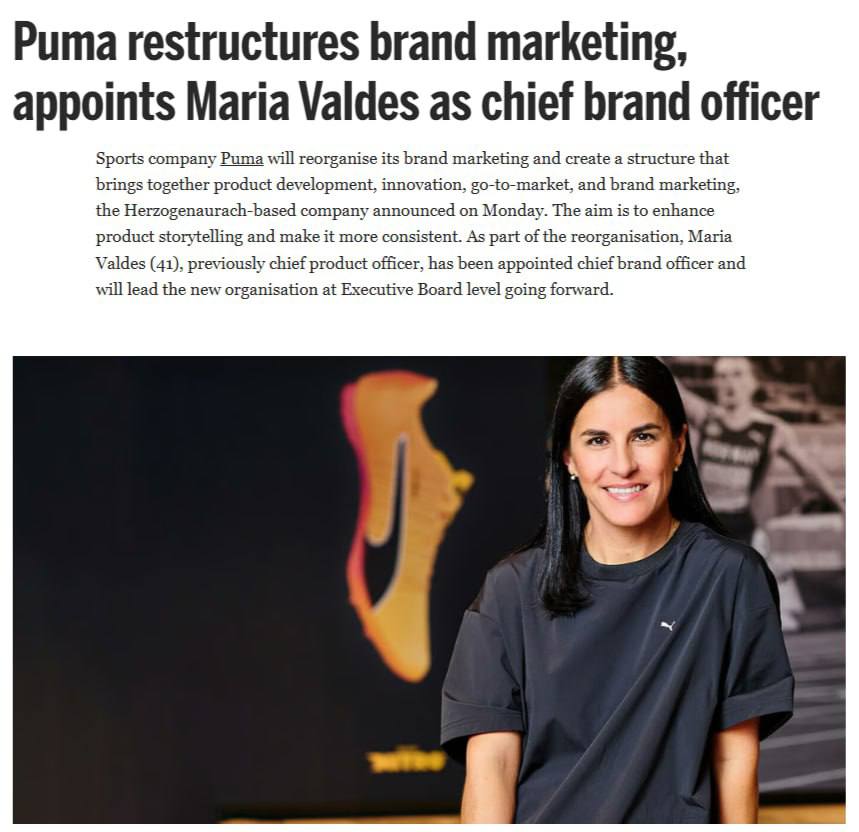 Puma объявила о реструктуризации маркетинга бренда, объединяя разработку продуктов, инновации, выход на рынок и бренд-маркетинг в единую структуру, чтобы сделать сторителлинг [🤮 — мнение Редакции] более целостным и последовательным.