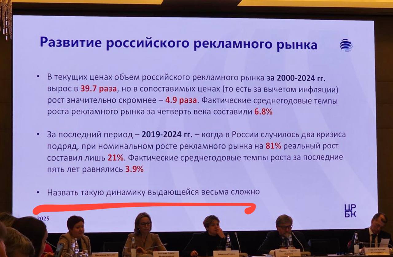 🤓Вот исходный слайд, на котором господин Веселов сообщает, что если бы вы купили биткойн в 2019 году российский рекламный рынок растет не самыми выдающимися темпами.