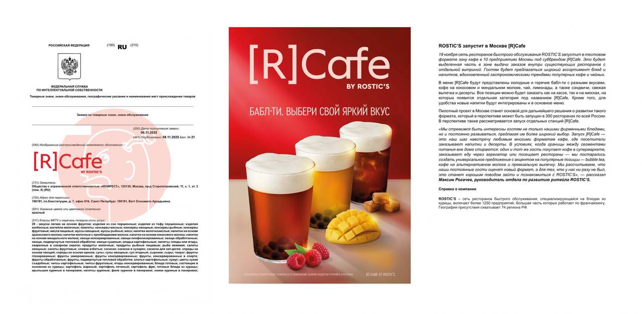 Вчера мы сообщили об этом в своем канале, а сегодня компания дает пресс-релиз и разъясняет, что R-cafe это микро-кафе с баббл-ти, которые будут установлены внутри действующих Ростиксов. Матрешка-вложение, как Мак-кафе внутри Макдоналдса, например.