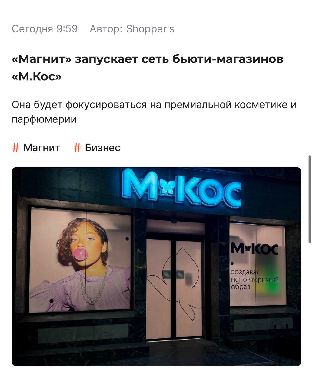 🤓Например, мы не только рассказали о ребрендинге Магнит Косметик за 2 месяца до его публичного объявления, но и объяснили его смысл и назначение.