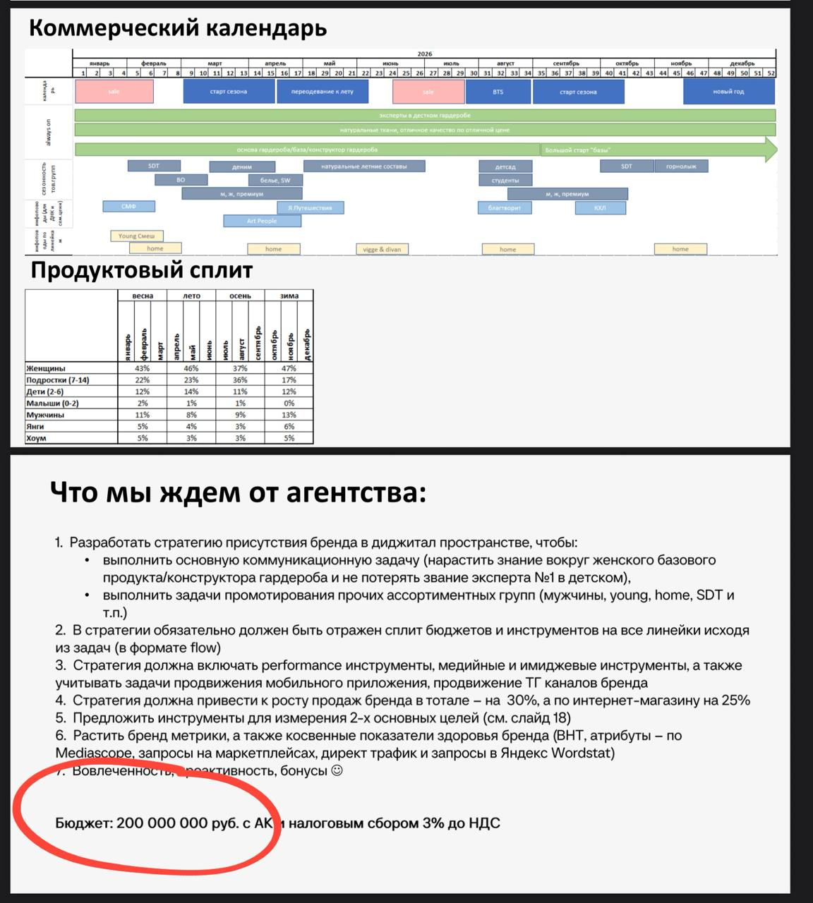 Кстати, они засветили промо-календарь, в рамках которого выбранному агентству предстоит освоить сумму в размере 200 млн. рублей по диджитал-направлению.