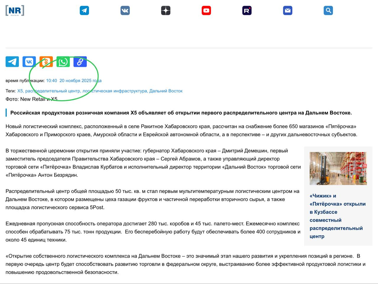 10:40 Мы открыли первый распределительный центр на Дальнем Востоке!