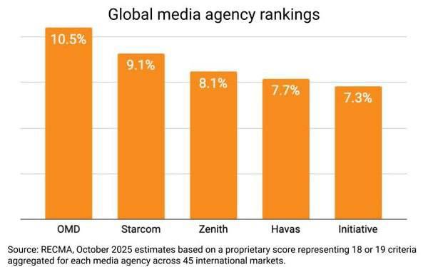 В свежем отчёте RECMA Diagnostics, одного из главных международных рейтингов, который оценивает эффективность медиасетей в 45 странах за трёхлетний период.