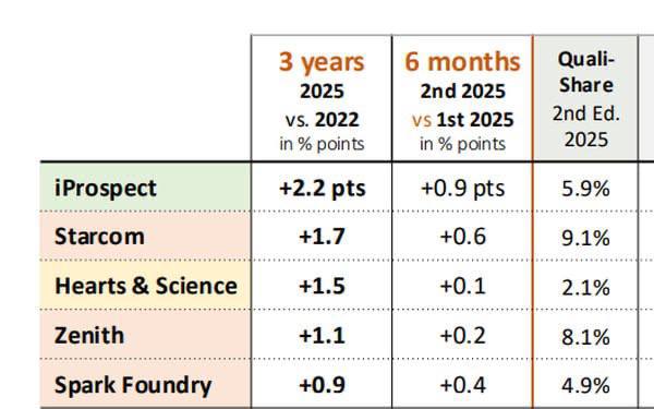 Отчёт фиксирует и динамику конкурентов: самым быстрорастущим агентством оказалось iProspect, а все три медийные сети Publicis вошли в топ-5 по темпам роста, что подчёркивает сильные позиции французской группы на глобальном рынке.
