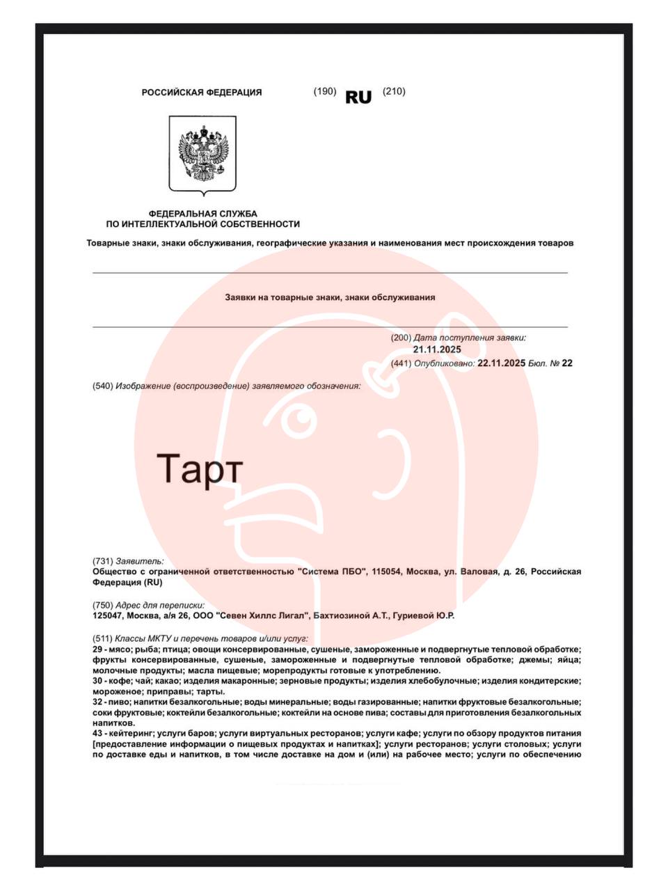 🤓Алярм. Вкусноточка планирует зарегистрировать на себя кучу общеупотребимых терминов, типа: «комбо», «айс», «бабл», «чикен» и пр.