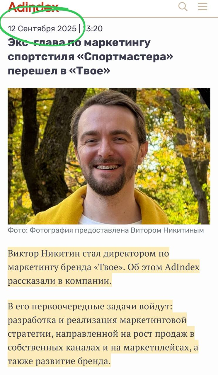 Забавно, что о назначении нового директора по маркетингу Виктора Никитина из Спортмастера Адиндекс писал в этом сентябре. Видать, не сработался с новым гендиром и не прошел испытательный.