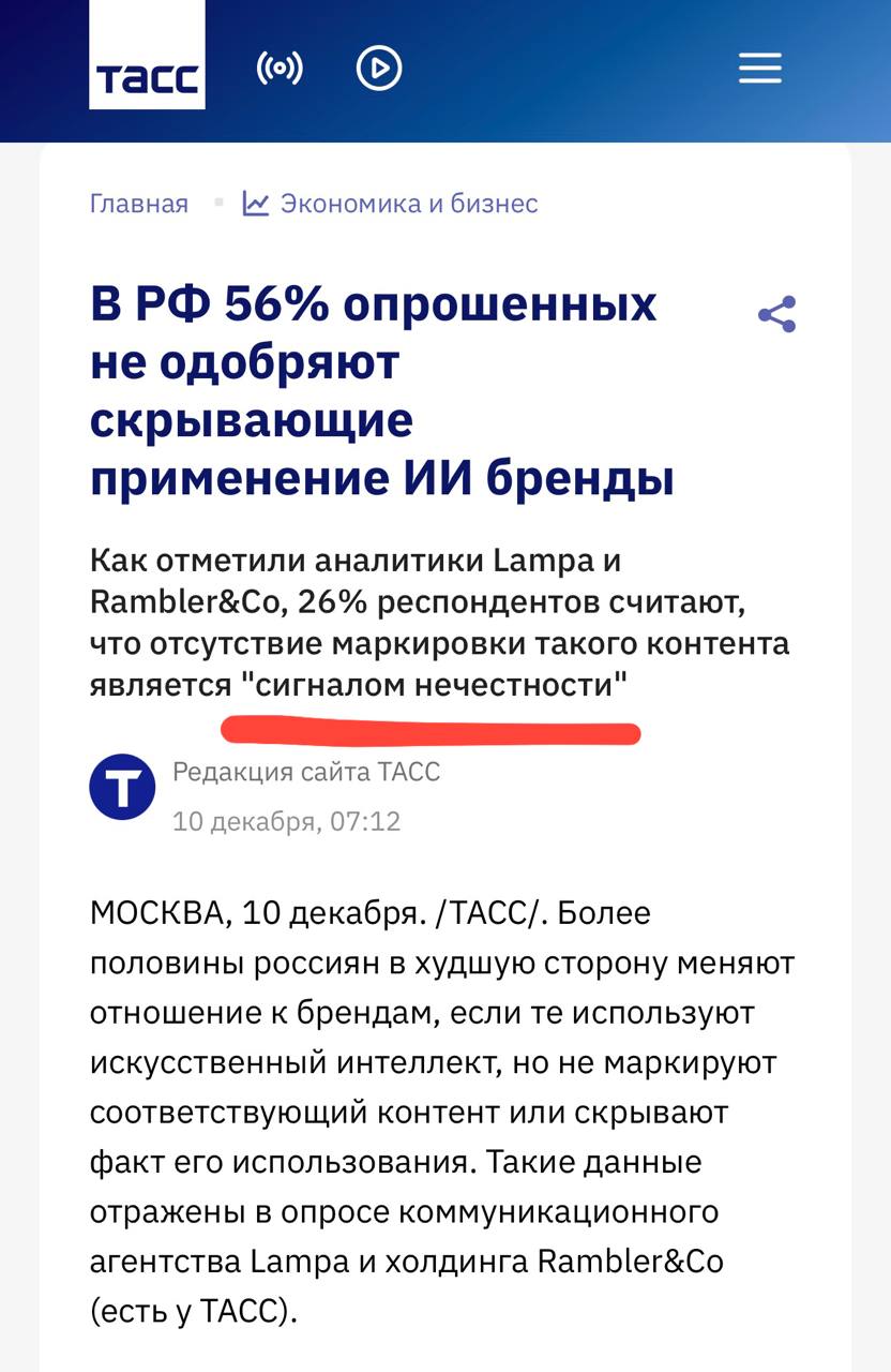 😂Использование AI в рекламе является «сигналом нечестности», инновационные вы наши.
