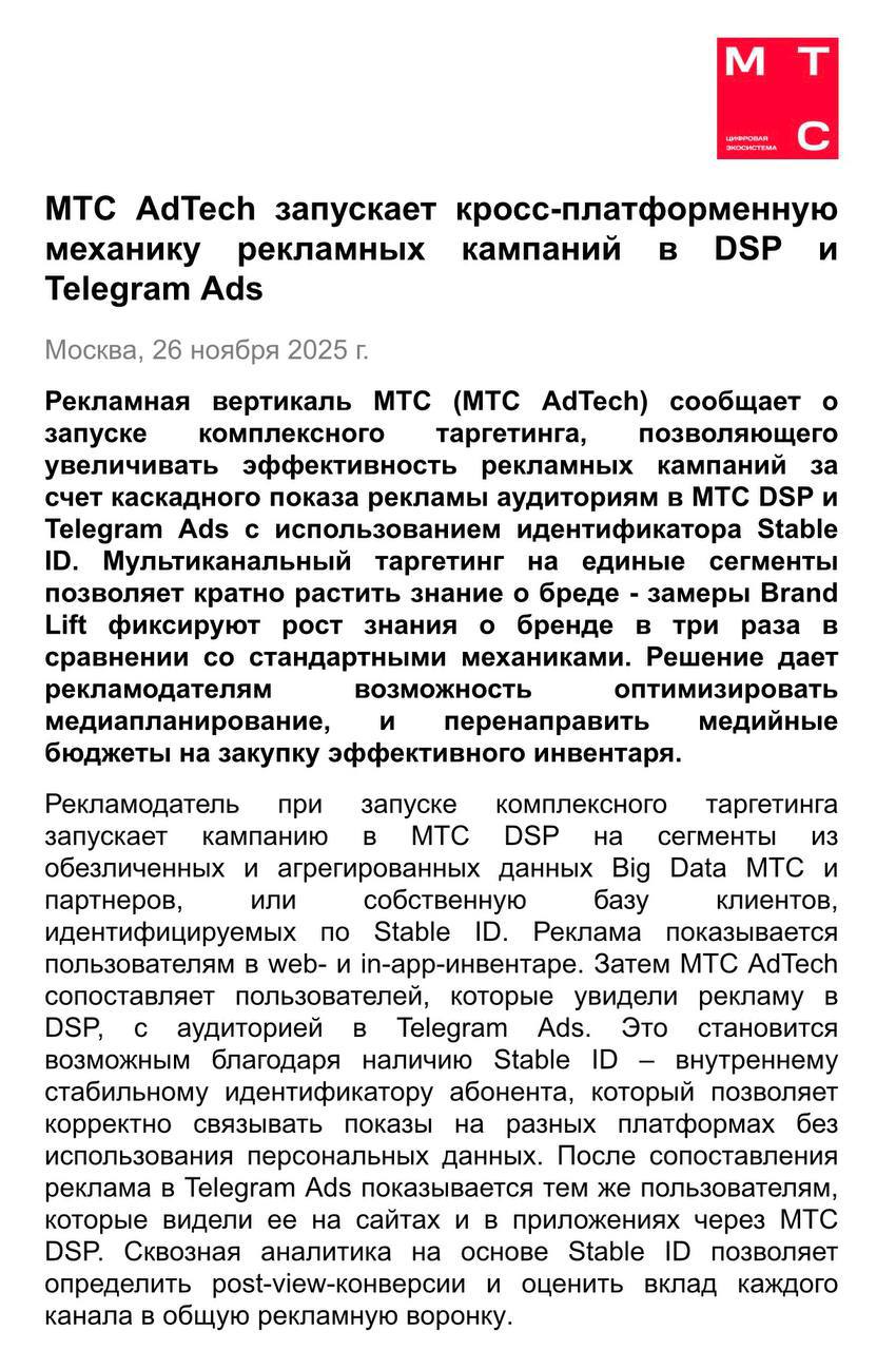 ΠΠ°ΡΠ° ΠΆΠ΅Π½Π° — ΠΊΠ°ΠΊ ΡΠ°Π· DSP-ΠΏΠ»Π°ΡΡΠΎΡΠΌΠ°, ΠΊΠΎΡΠΎΡΠ°Ρ Π²ΡΠ΅ ΡΡΠΎ ΠΏΠΎΠ΄ΡΡΡΠΎΠΈΠ»Π°. ΠΠΎΠ½ΡΡΠΎΠ»ΠΈΡΡΡΡΠ°Ρ ΡΠ΅ΡΠ° — ΡΠΈΡΡΠ΅ΠΌΠ° ΠΈΠ½Π΄Π΅Π½ΡΠΈΡΠΈΠΊΠ°ΡΠΈΠΈ ΠΏΠΎΠΊΠ°Π·ΠΎΠ² ΠΏΠΎ Stable ID, Π° Telegram Ads — ΠΎΠ±ΡΡΠ²Π»Π΅Π½ΠΈΡ Π² ΠΆΠ΅Π½ΠΈΠ½ΠΎΠΉ Π³Π°Π·Π΅ΡΠ΅Π½ΠΊΠ΅, ΠΈΠ»ΠΈ Π² ΠΏΡΠΈΠ»ΠΎΠΆΠ΅Π½ΠΈΠΈ WB.