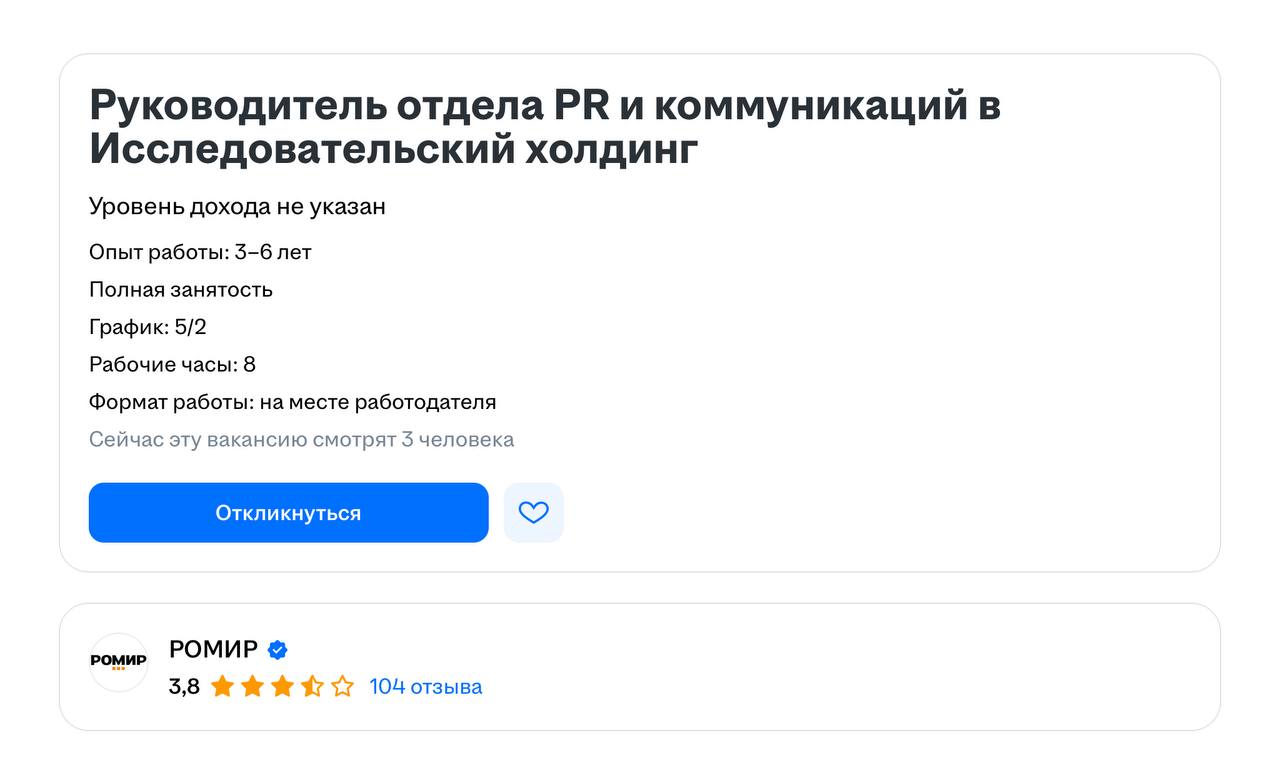 РОМИР — единственный крупный исследовательский холдинг, с которым до сих пор ну нас не налажен диалог. А мы хотим получать ваши исследования напрямую, а не из каналов коллег.