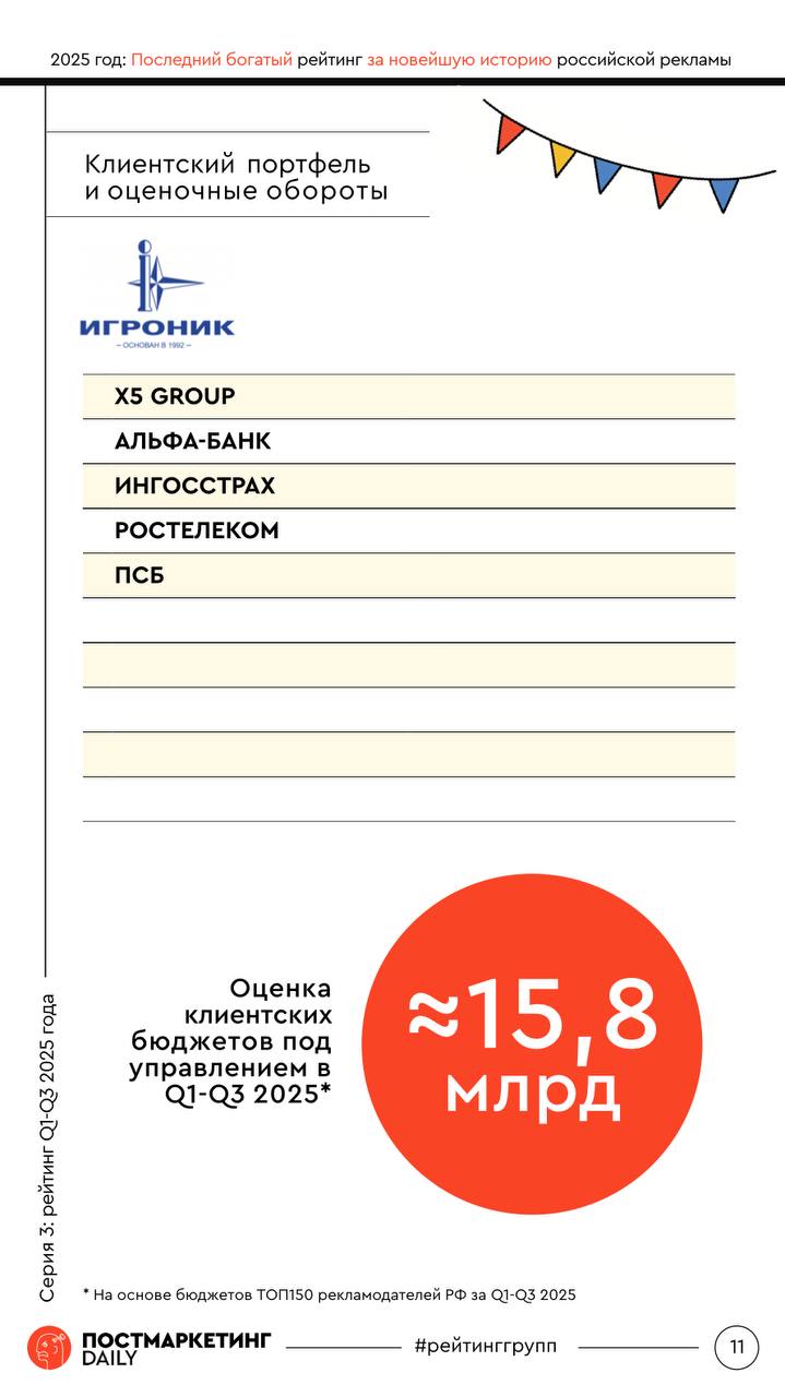 🎅🏻Третья серия Рейтинга Постмаркетинг DAILY за 3 квартала 2025 года, результаты которого, мы сегодня заспойлерили в утренних Ведомостях.