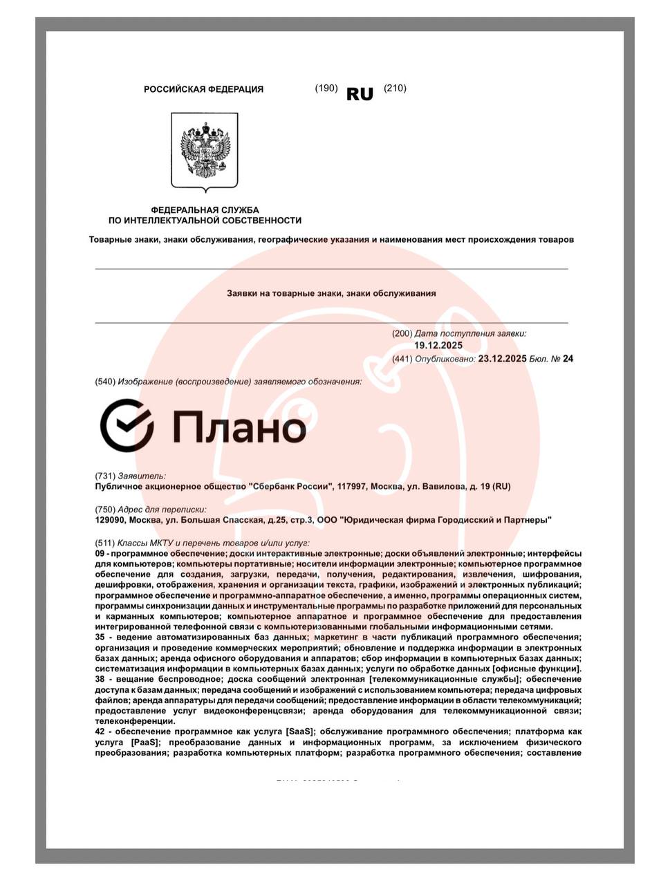🤔Кажется Сбер запускает какое-то решение для управления задачами с названием «Плано». Такая заявка подана на днях в патентное ведомство.