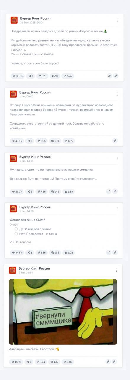 Бургер Кинг ищет виноватых в новогоднем поздравлении Вкусноточки.