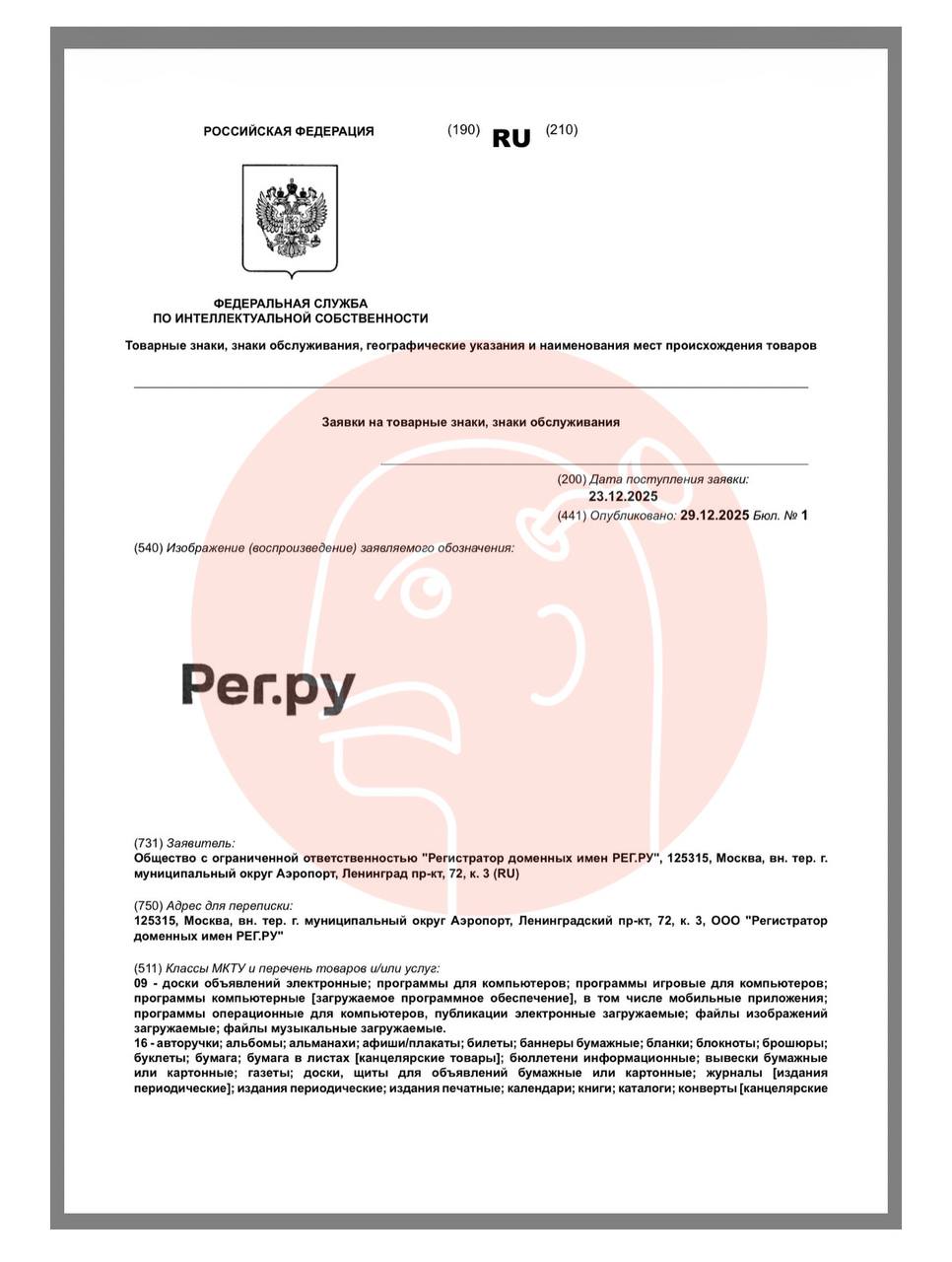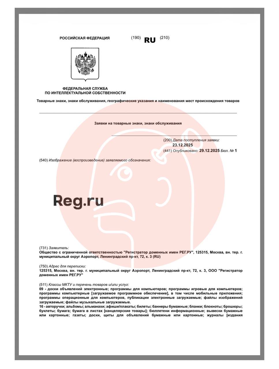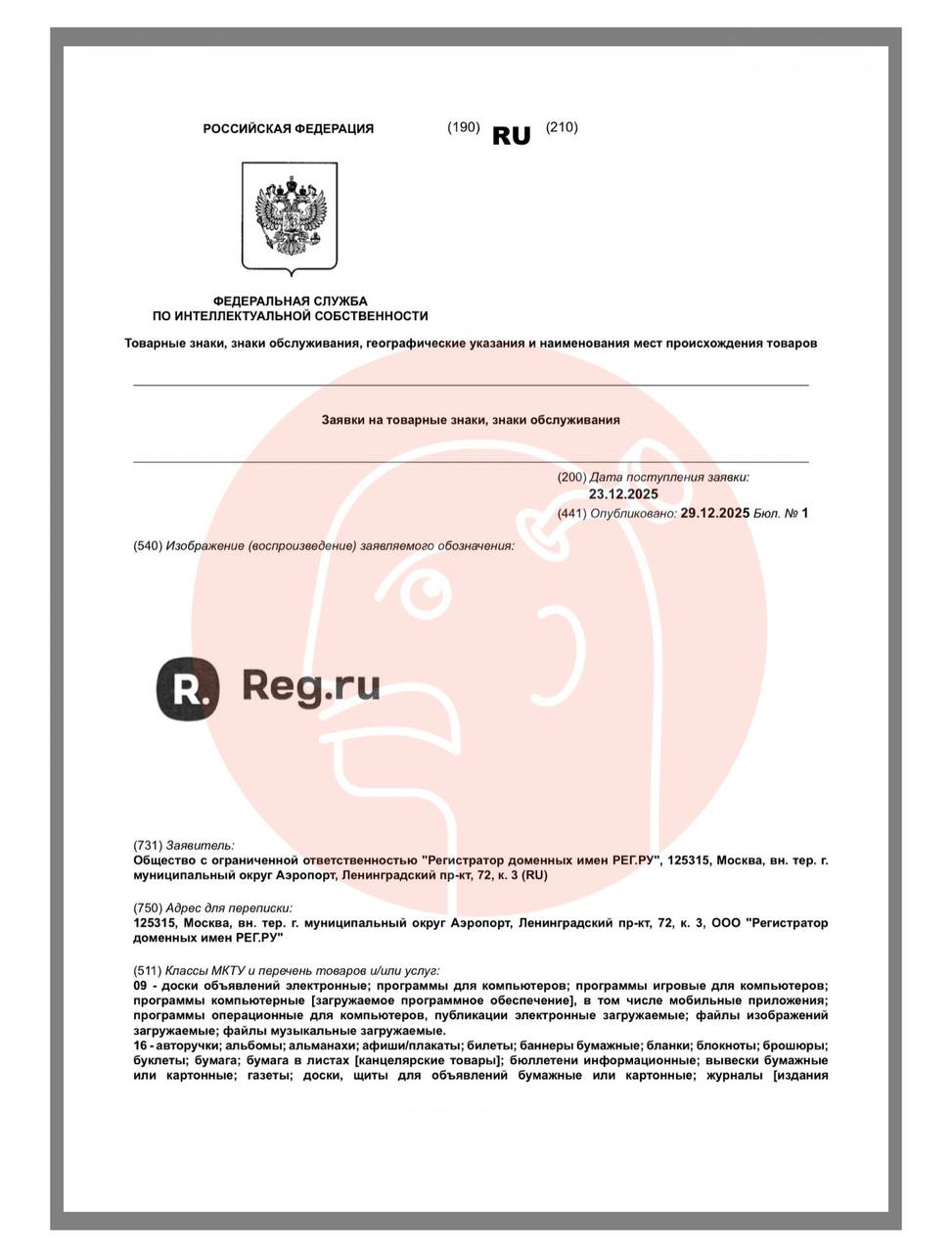 🤔Кажется грядет ребрендинг крупнейшего регистратора РФ — Reg,ru. Перед новогодними праздниками он подал на регистрацию (каламбур, ага) новый комплект айдентики, отличный от используемого сегодня.