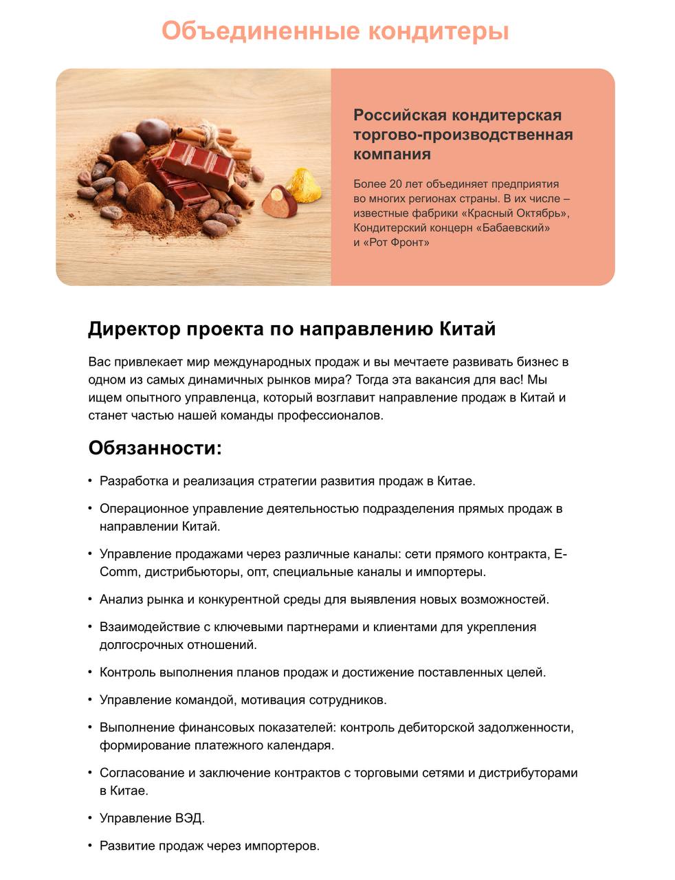 🤓А вот Объединенные кондитеры замыслили экспансию в Китай и ищут человека, который знает как это делать. Посмотрим за результатами через годик-другой...