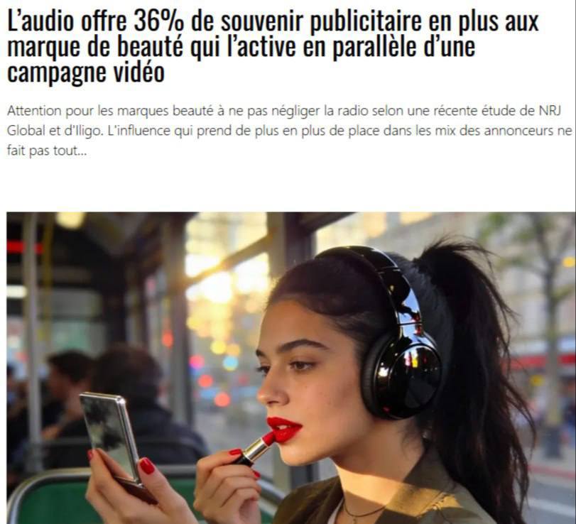 Они инициировали исследование совместно с Iligo, которое (о, Боже!) показало, что аудиореклама усиливает эффект видеокампаний для бьюти-брендов.