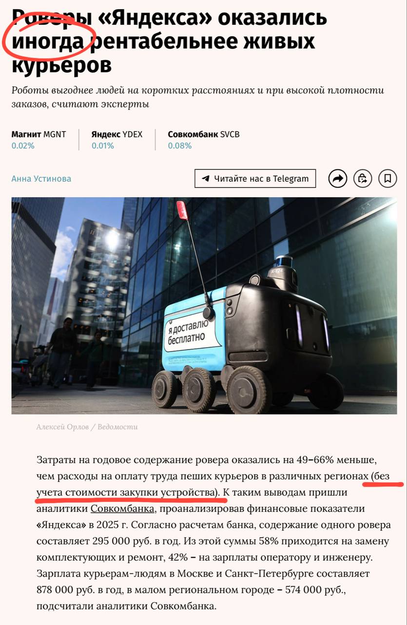 😂Очень недосказанный текст в пользу роботизации публикуют сегодняшние Ведомости. Отмечаем два логических провала, которые на практике бизнеса превращаются в бездну.