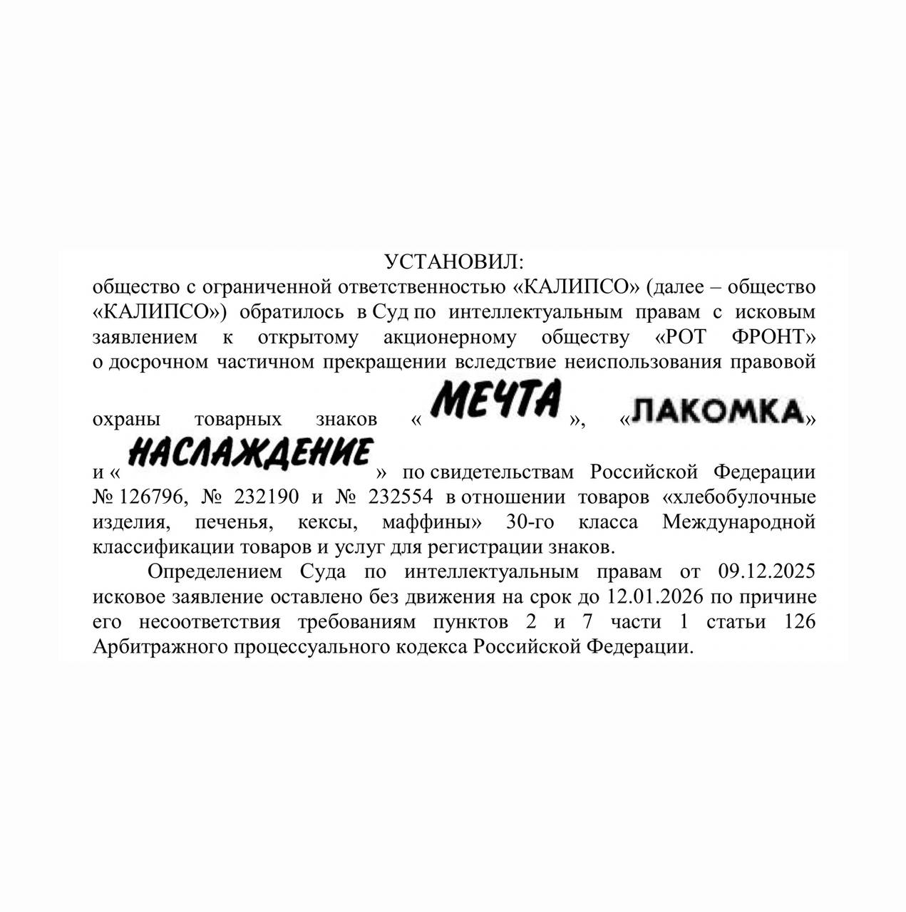 π€ΠΡΠ΅Π΄ΠΏΡΠΈΡΡΠΈΠ΅ «Π’ΡΠ»ΡΡΠΊΠΈΠΉ ΠΊΠΎΠ½Π΄ΠΈΡΠ΅Ρ» (ΠΠΠ «ΠΠ°Π»ΠΈΠΏΡΠΎ) ΠΏΡΡΠ°Π΅ΡΡΡ Π² ΡΡΠ΄Π΅ ΠΎΡΠΎΠ±ΡΠ°ΡΡ Ρ «ΠΠ±ΡΠ΅Π΄ΠΈΠ½Π΅Π½Π½ΡΡ ΠΊΠΎΠ½Π΄ΠΈΡΠ΅ΡΠΎΠ²» ΠΏΡΠ°Π²Π° Π½Π° ΡΠΎΠ²Π°ΡΠ½ΡΠ΅ Π·Π½Π°ΠΊΠΈ ΠΊΠΎΠ½Π΄ΠΈΡΠ΅ΡΡΠΊΠΈΡ ΠΈΠ·Π΄Π΅Π»ΠΈΠΉ «ΠΠ΅ΡΡΠ°», «ΠΠ°ΠΊΠΎΠΌΠΊΠ°» ΠΈ «ΠΠ°ΡΠ»Π°ΠΆΠ΄Π΅Π½ΠΈΠ΅» Π² ΡΠ»Π΅Π΄ΡΡΠ²ΠΈΠΈ ΠΈΡ Π½Π΅ΠΈΡΠΏΠΎΠ»ΡΠ·ΠΎΠ²Π°Π½ΠΈΡ.