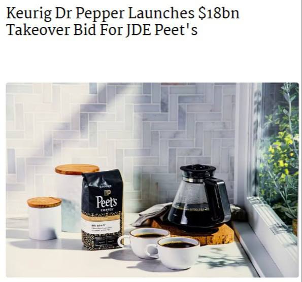 π€ΠΠΌΠ΅ΡΠΈΠΊΠ°Π½ΡΠΊΠ°Ρ ΠΊΠΎΠΌΠΏΠ°Π½ΠΈΡ Keurig Dr Pepper ΠΏΡΠ΅Π΄Π»ΠΎΠ΄ΠΈΠ»Π° 18 ΠΌΠ»ΡΠ΄ $ Π·Π° ΠΏΠΎΠΊΡΠΏΠΊΡ Π½ΠΈΠ΄Π΅ΡΠ»Π°Π½Π΄ΡΠΊΠΎΠΉ ΠΊΠΎΡΠ΅ΠΉΠ½ΠΎΠΉ Π³ΡΡΠΏΠΏΡ JDE Peetβs...