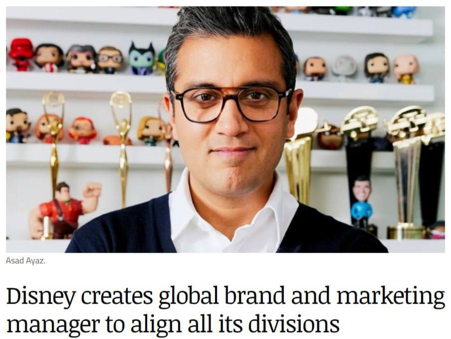На пост назначен Асад Аяз, который напрямую подчиняется CEO Бобу Айгеру и отвечает за единое восприятие бренда. Новая структура охватывает кино, парки развлечений и ESPN, крупнейшую спортивную медиасеть США.