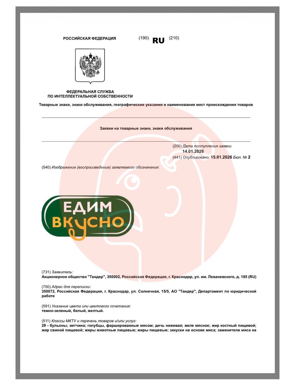 🤓Новый СТМ от Магнита, подан на регистрацию в патентное ведомство. Полагаем, что это готовая еда.