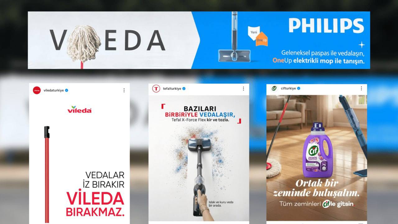 Там Philips запустил кампанию в наружной рекламе для электрической швабры OneUp с намёком на отказ от традиционных швабр, фактически задевая бренд Vileda.