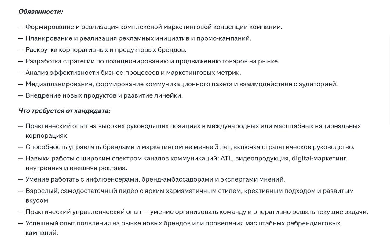 🤓А вот еще один «иностранный холдинг» ищет себе директора по маркетингу. Напомним, вчера с подобной вакансией в нашем поле зрения появился предположительно «иностранный ритейлер» Ашан.