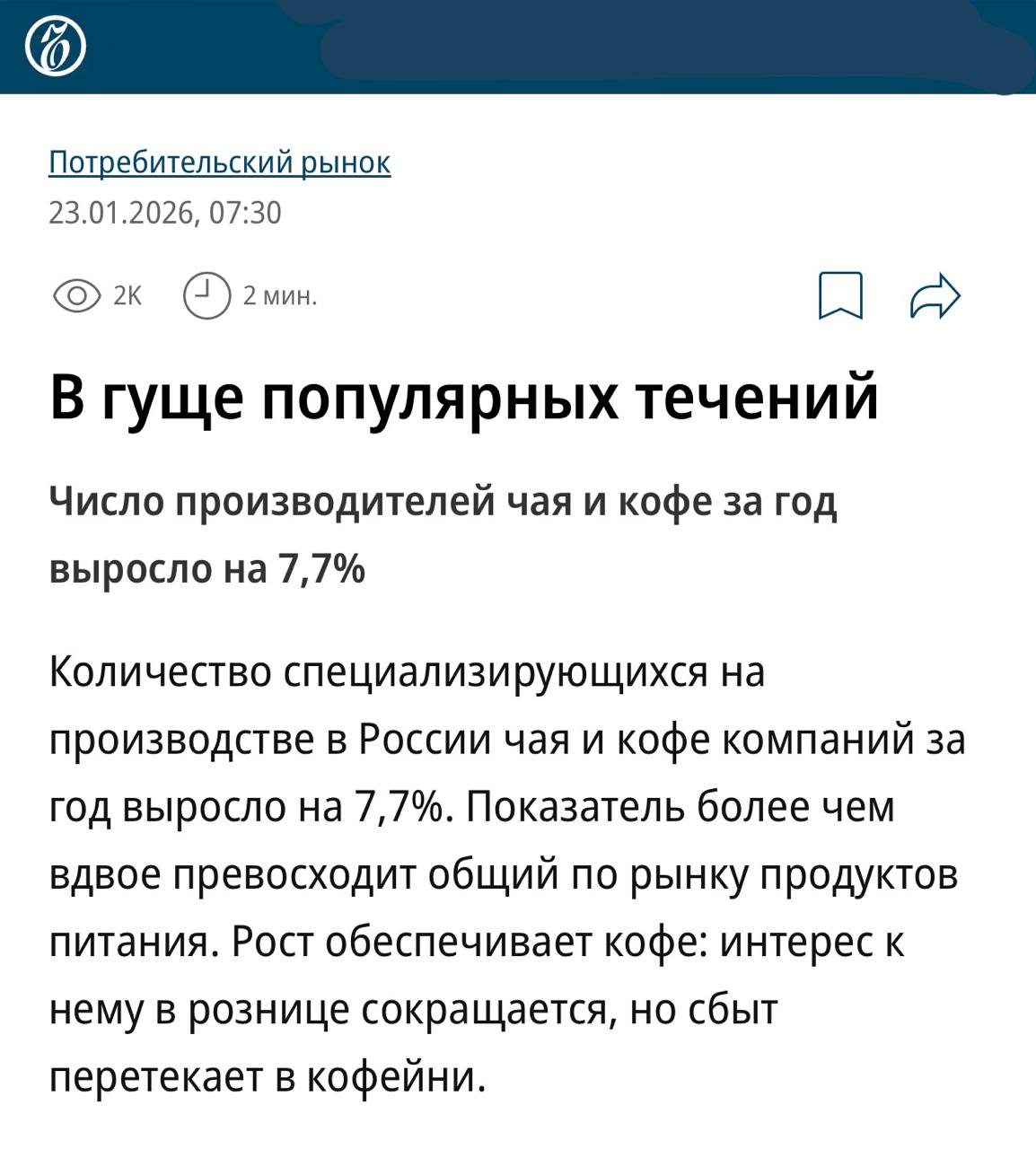 🤓Любопытный факт. Рынок кофе становится меньше, а производителей — больше.