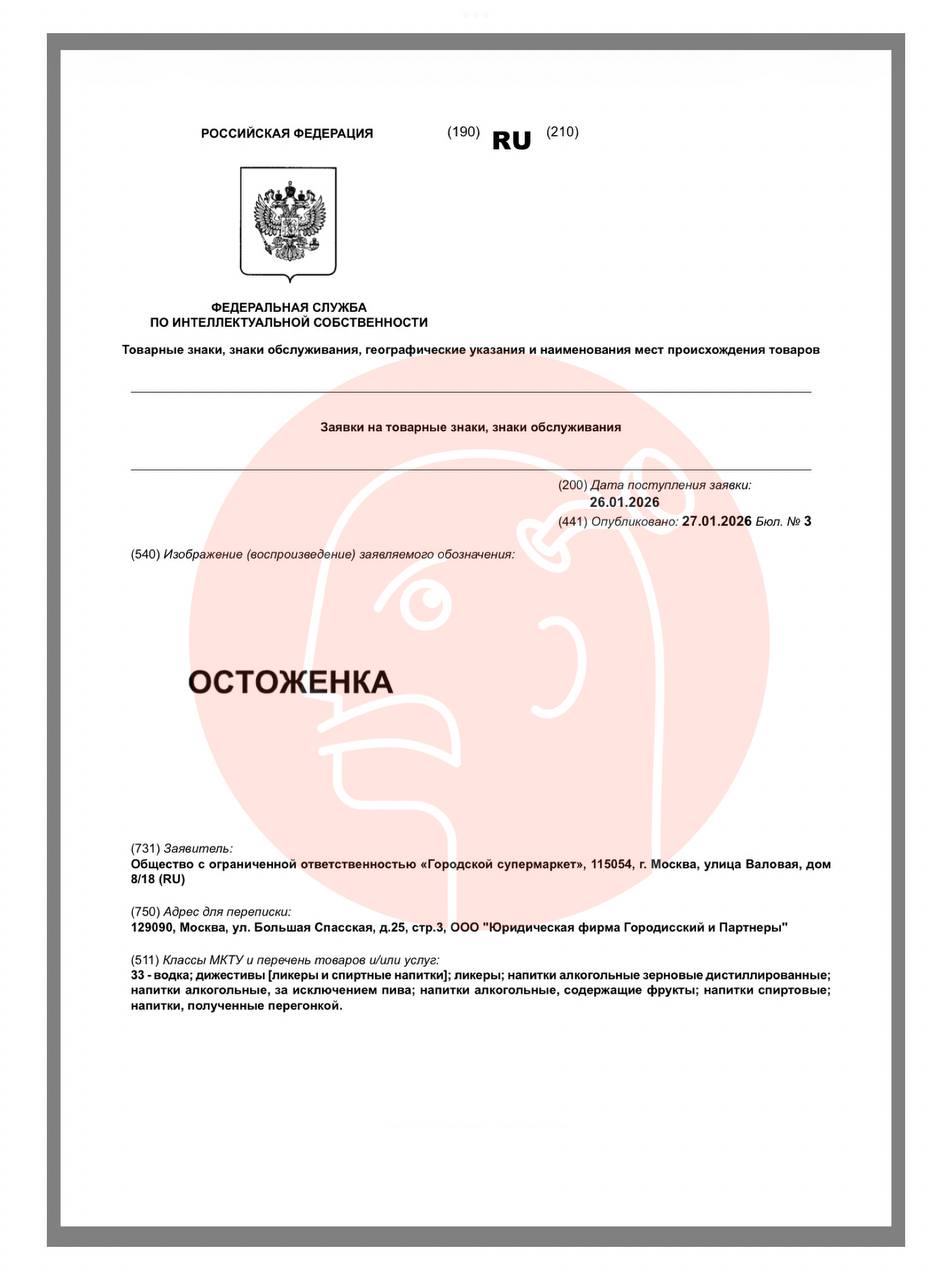 🤓Юрлицо «Азбука вкуса» регистрирует товарный знак «Остоженка» для крепкого алкоголя. Самая дорогая улица России и самая дорогая сеть продуктовых магазинов сошлись в одной рюмке!