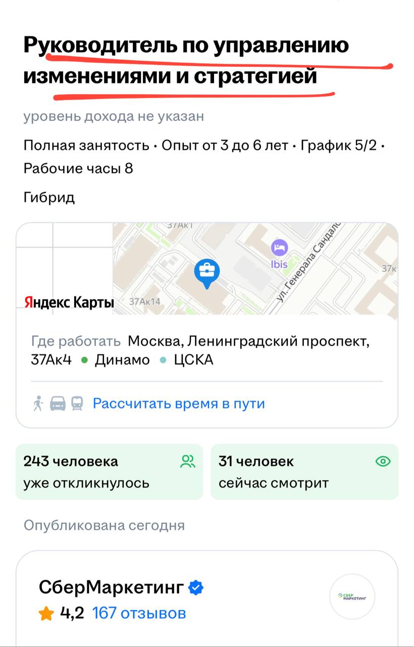 Компания ищет лидера этих изменений на публичной доске объявлений. Судя по формулировке вакансии — в первую очередь менять станут стратегию.