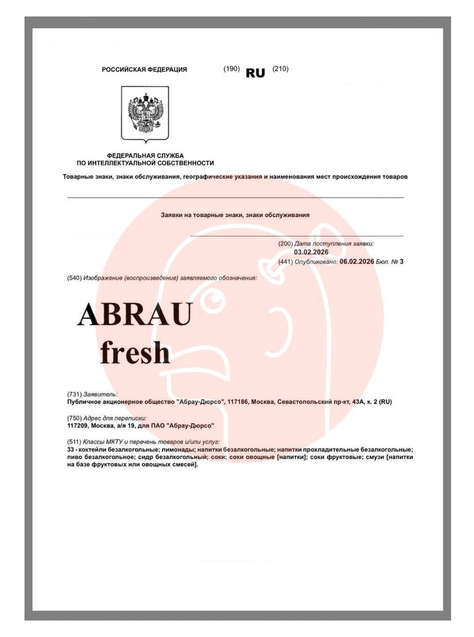 🤓Еще один безагкогольный бренд подан на регистрацию крупным отечественным производителем вина «Абрау Дюрсо». Судя по категориям указанным в заявке, планируется его использование в производстве коктейлей, лимонадов, соков и смузи.
